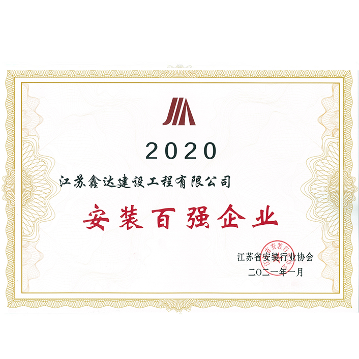 Top 100 installation enterprises in Jiangsu Province in 2020