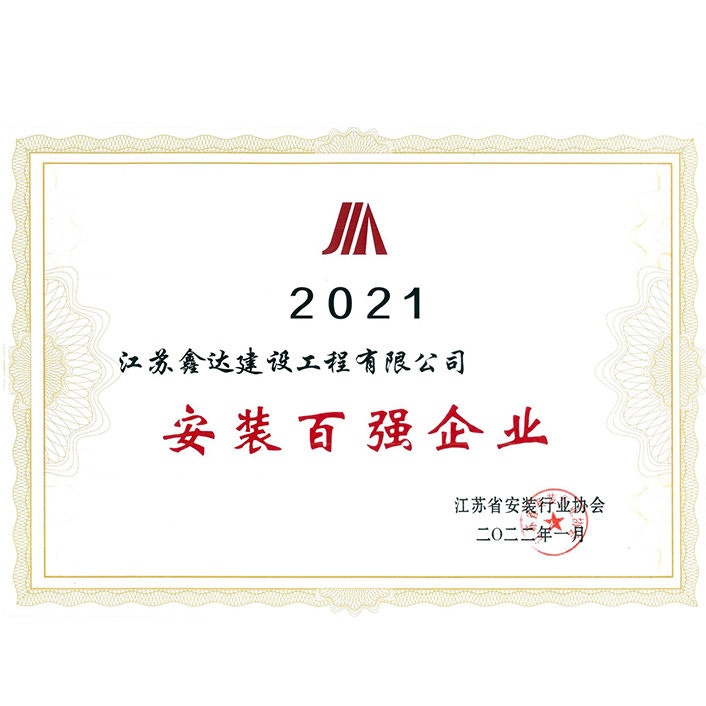 Top 100 installation enterprises in Jiangsu Province in 2021