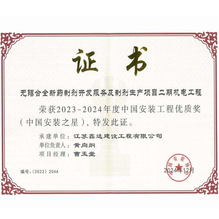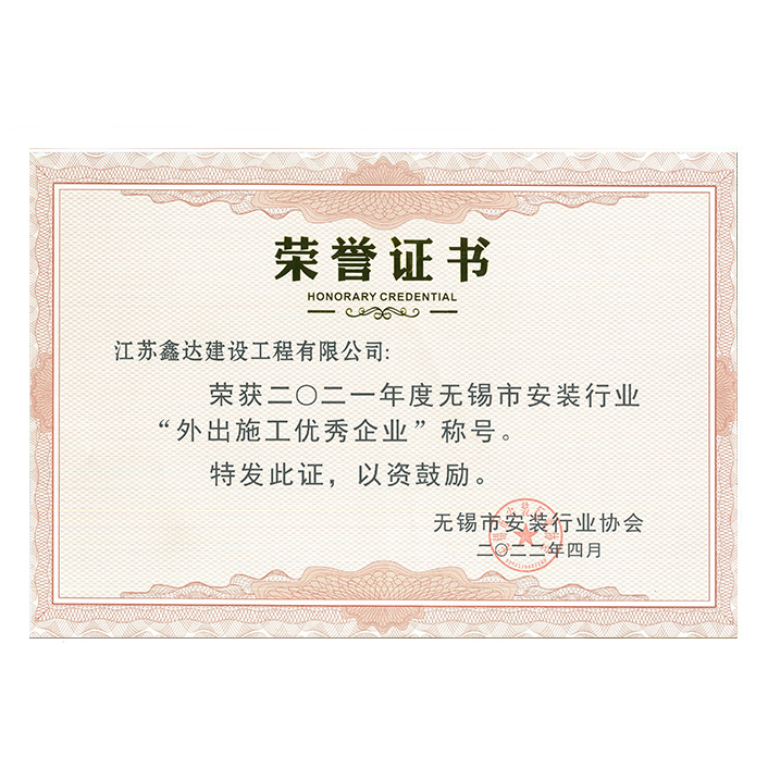 Outstanding Enterprise in Wuxi Installation Industry in 2022