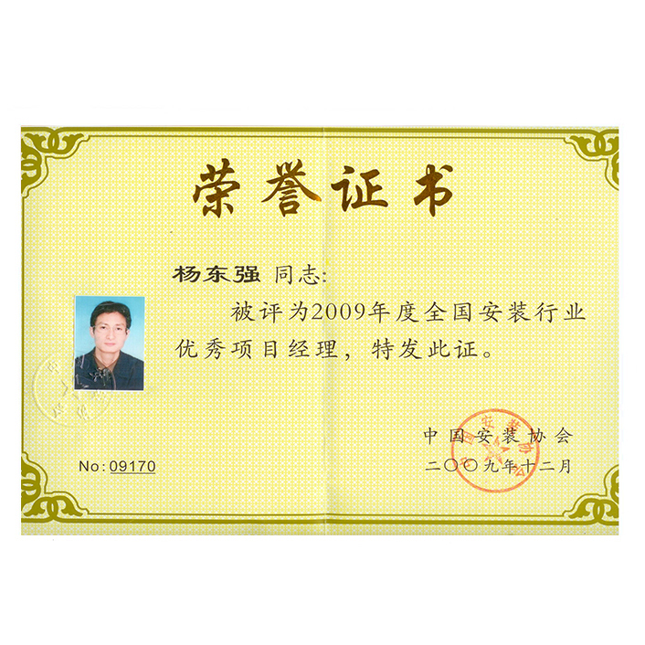 Second Prize of QC Group Achievement in Wuxi Installation Industry (Li Yifei)