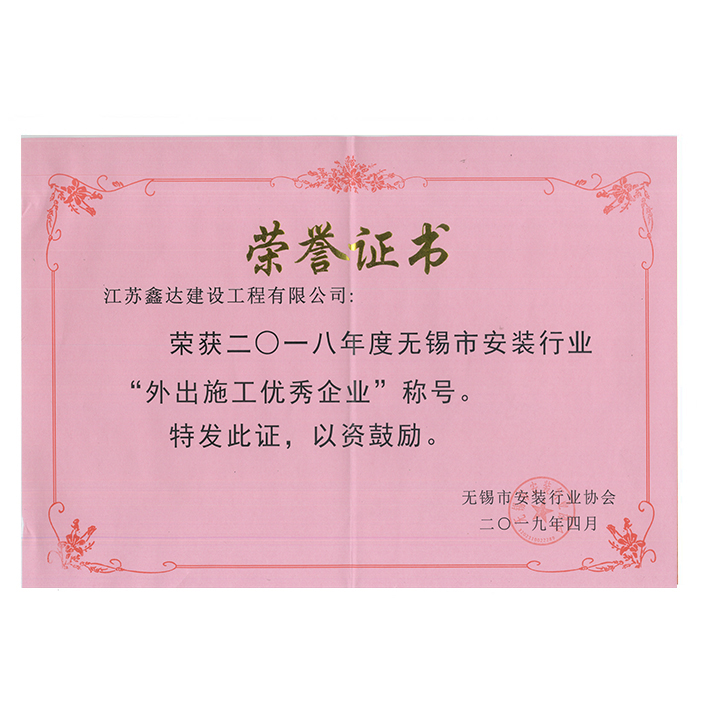 2018年度市安装行业外出施工优秀企业