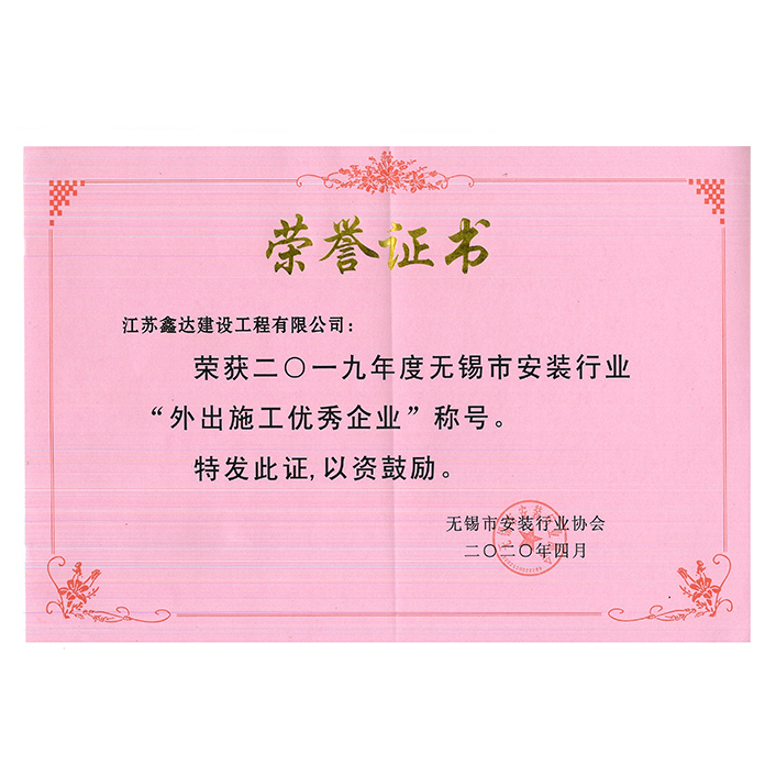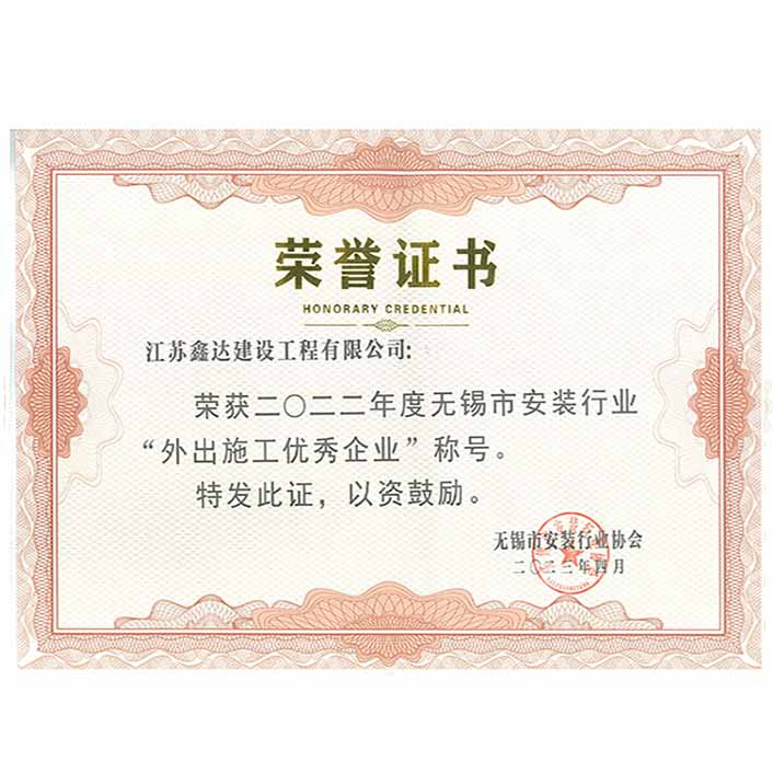 2024年度无锡市安装行业“外出施工优秀企业”