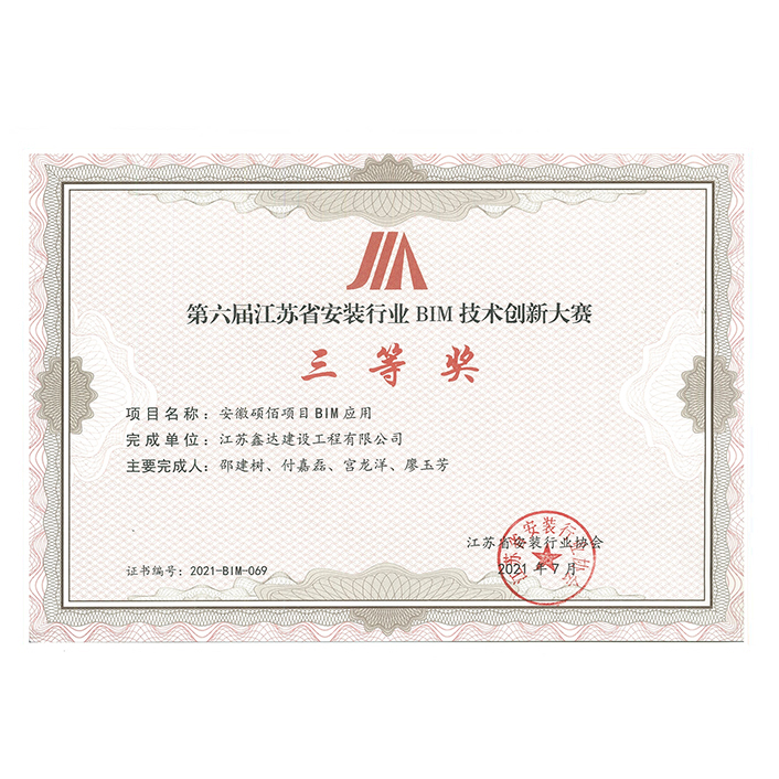 第六届省安装行业BIM创新大赛三等奖