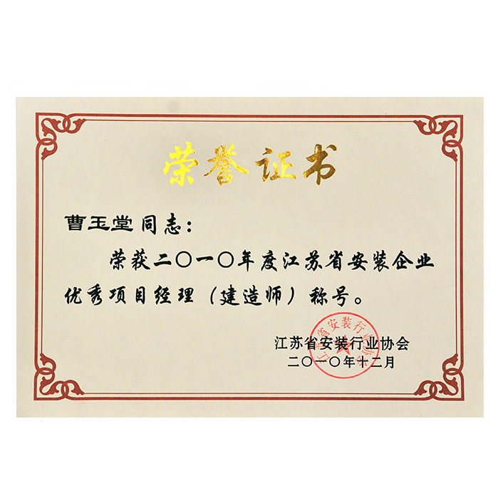 2010年省安装行业优秀项目经理(曹玉堂)