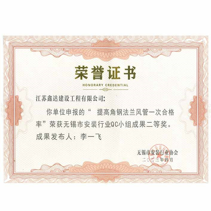 无锡市安装行业QC小组成果二等奖(李一飞)
